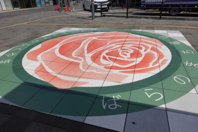 福山駅の歩道のタイルは、バラのイラストだったり、