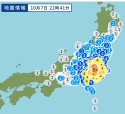 10/7の夜に東京23区、埼玉県南で震度5強の地震がありましたね。