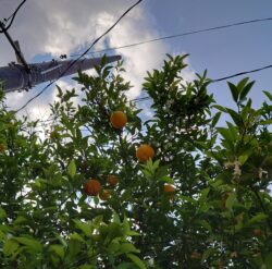 公園の端に植えられているミカンの木に花が咲いていました。