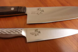 鋼の中では上から2番目と思われる「桃山」シリーズの三徳包丁と、