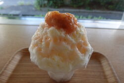 尾道のイチジク甘露煮が2つ入ったかき氷。