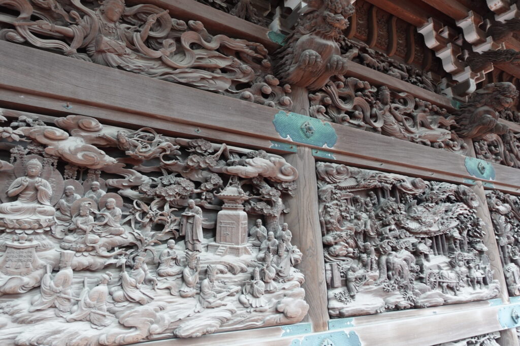 彫刻がほどこされている建物のまわりに